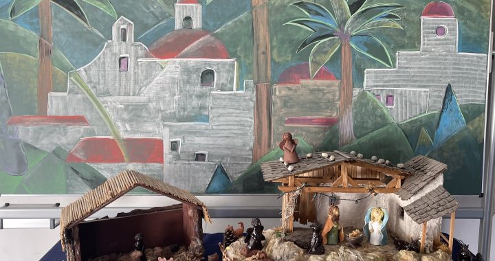 Wenn die Adventszeit beginnt, wird es bei uns in der Schule jedes Jahr ganz besonders schön. Schon seit vielen Jahren schmückt Lehrer Tamm die Aula mit der Krippe – das hat bei uns Tradition. Doch als Herr Tamm an unsere Schule kam, entwickelte er diese Tradition weiter.