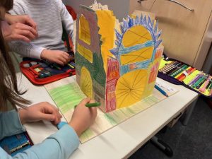 Manche Klassen bastelten zu Hause, manche in klassenübergreifenden Projekten oder in Gruppenarbeit. In jedem Fall sind liebevoll gestaltete Gebäude entstanden, die in den nächsten Wochen noch in einer Ausstellung in der Sparkasse zu bewundern sind. Alle kleinen Architekten sind mächtig stolz auf ihre Werke!